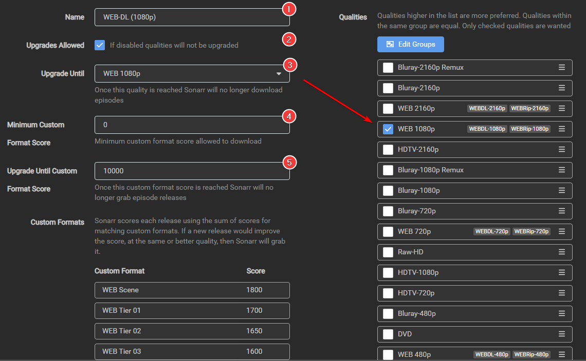 5. Keep upgrading Custom Format until this score is reached. (setting this to 0 means no upgrades will happen based on Custom Formats)
